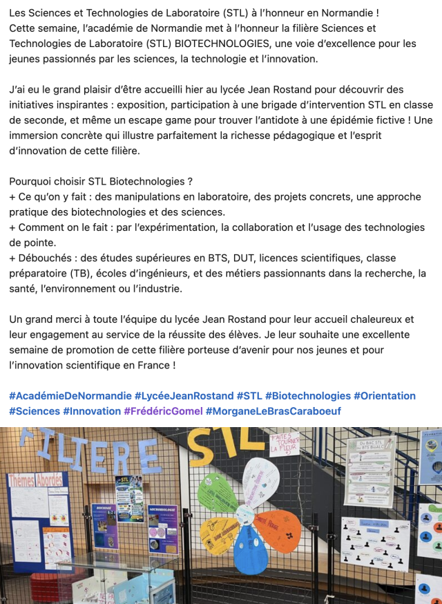 Post de M.Segarra, inspecteur général de l’éducation nationale, suite à son accueil au lycée Jean Rostand de Caen :